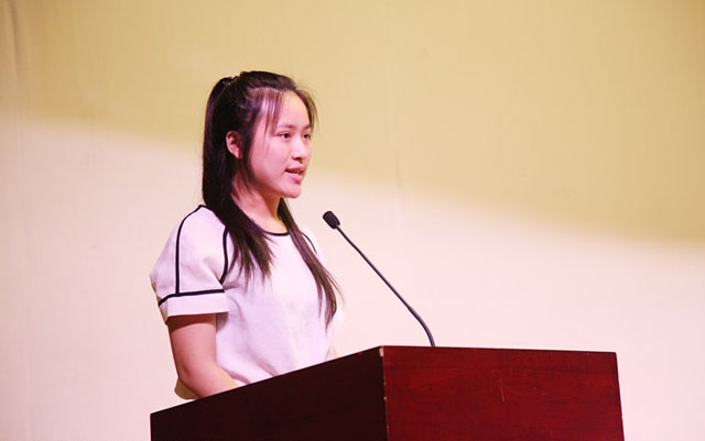 国际本科新生代表赖同学上台表达了新生们兴奋的心情和努力学习的决心。