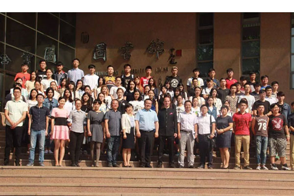 开学典礼结束后,同学们与院领导在学校图书馆前合影。当天下午,国际直通车课程项目学生与意大利语直通车项目学生分别在学校进行了分班考试和意大利都灵美术学院院长萨尔沃教授(SalvoBitonti)来访我院进行的都灵美术学院中国区预选考试。